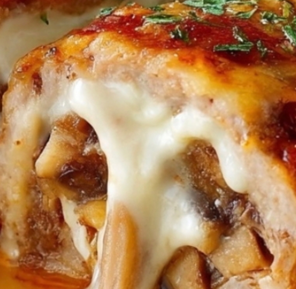 Baked Stuffed Meat Roll with Mushroom Mashed Potatoes
