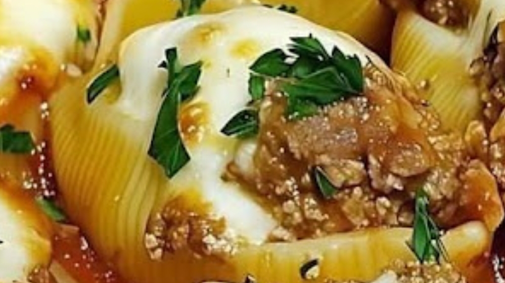 Spoon the remaining beef mixture and marinara sauce over the stuffed shells.