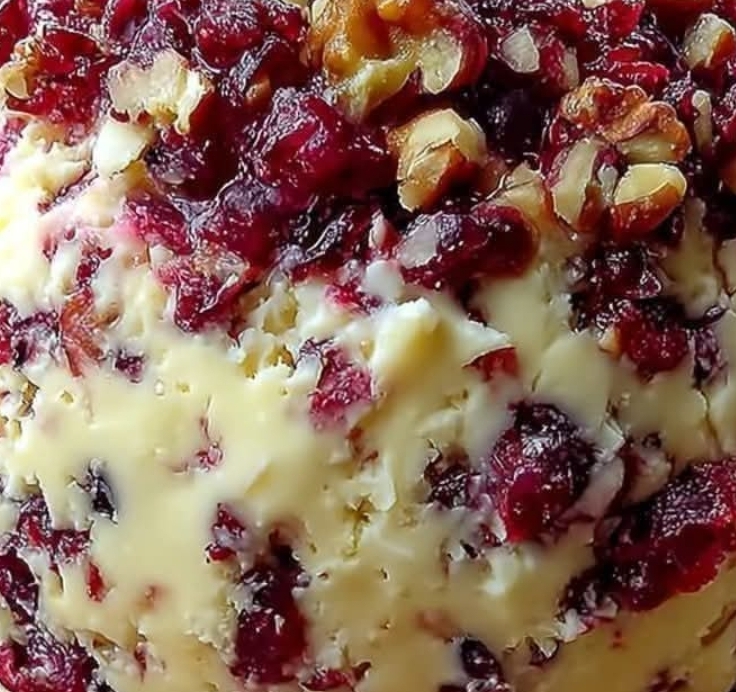 On a plate, mix extra chopped pecans and dried cranberries together. Roll the chilled cheese ball in the mixture until evenly coated.