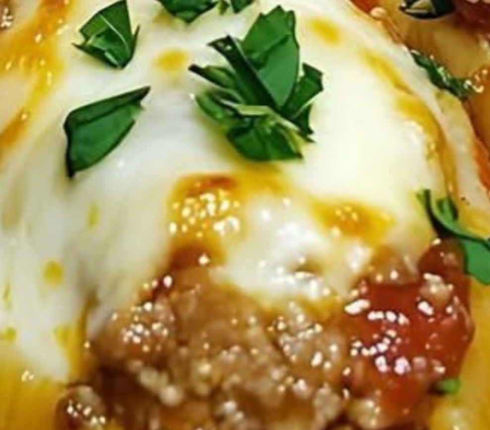 Spoon the remaining beef mixture and marinara sauce over the stuffed shells.
