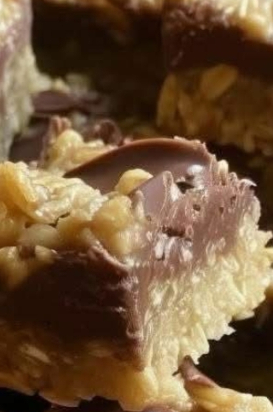 Crumble the remaining oat mixture over the chocolate layer, pressing in gently.